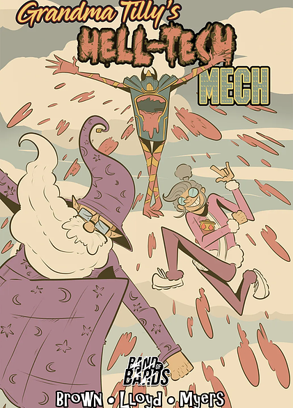 Grandma Tilly has returned from her adventure in space with the Hell-Tech Mech and is ready to sit down for her weekend of gaming. Unfortunately, the servers for her favorite game are down, putting a halt to any gameplay for the foreseeable future. Jumping back into the Hell-Tech Mech alongside gaming store clerk (and wannabe wizard) Kevin, Tilly travels to the game develo