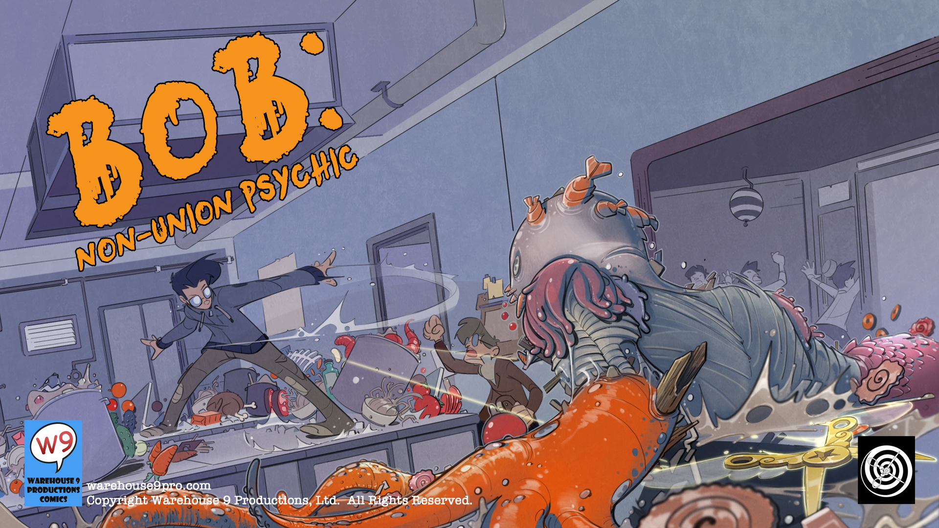 Warehouse 9 Productions, Ltd. (W9) is an independent comic book company that owns and distributes the amazing graphic novel BOB: NON-UNION PSYCHIC - THE BIG BOOK OF BOB VOL. 1.